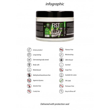 Lubrificante a base d'acqua. Contiene il principio attivo CBD (cannabidiolo). Adatto all'uso con profilattici di lattice. Dermatologicamente testato, non unge, è incolore, inodore, insapore. Istruzioni per l'uso: applicare sul corpo la quantità di gel desiderata e ripetere l'applicazione a piacere. Solo per uso esterno. Tenere fuori dalla portata dei bambini. Conservare in luogo fresco e al riparo dalla luce.