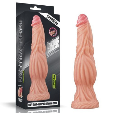 9.5 Dual layered Platinum Silicone di Lovetoy è un dildo in silicone a doppio strato, incredibilmente realistico e caratterizzato da un fusto imponente e un glande sporgente che regala sensazioni autentiche ed un piacere reale. Ha dimensioni esagerate che lasciano a bocca aperta, è morbido al tatto e la sua potente base a ventosa consente di fissarlo su qualsiasi superficie liscia per stimolazioni uniche in diverse posizioni. Privo di ftalati e di latex, 9.5 Dual layered Platinum Silicone ha venature, texture e forme riproducono al tatto la sensazione di penetrazione reale. Rivestimento impermeabile per stimolazioni potenti anche in acqua.