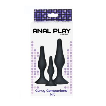 kit set fallo anale plug nero in silicone con dildo con ventosa black curvy anal play