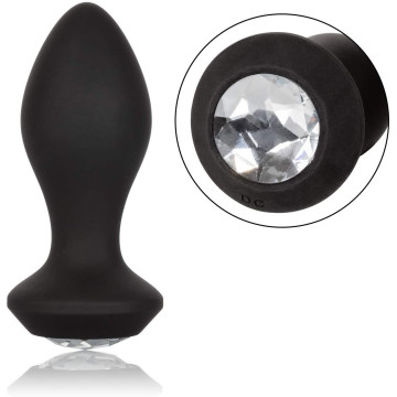 La sonda a cristallo vibrante Power Gem® è una sonda in silicone abbagliante e flessibile creata per facilitare il piacere anale emozionante. Il design flessibile ed ergonomico e i potenti motori a vibrazione consentono a questa sonda di flettersi con i movimenti, offrendo al contempo vibrazioni intense. Concediti un piacere personalizzato mentre l'elegante sonda pulsa con 10 vibrazioni vivaci, pulsazioni appassionate ed escalation erotica. Controlla questa varietà di opzioni orgasmiche con il pulsante gemma di facile tocco.
