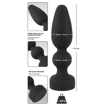 Plug anale morbido con punta allungata e affusolata e ispessimento aggiuntivo sull'albero. Grazie alla sua forma conica e alla sua delicata superficie morbida al tatto, la spina è facile da inserire, ma con l'ispessimento sferico sull'albero offre anche una sensazione piacevolmente piena. L'ampia base rotonda fornisce supporto e garantisce un utilizzo sicuro.
