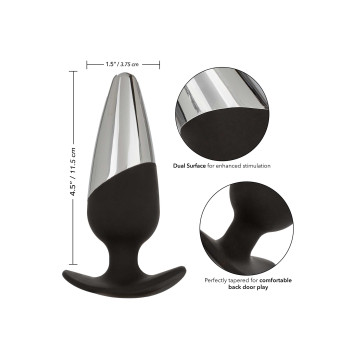 Abbandonati all'estasi di una stimolazione potenziata con la doppia superficie CalExotics Executive Plug. Questo plug appassionato è realizzato per un piacere aerodinamico con un'emozionante punta in metallo, una sonda delicatamente affusolata e una base flangiata EZ Grip per l'inserimento, la stimolazione e la rimozione senza sforzo