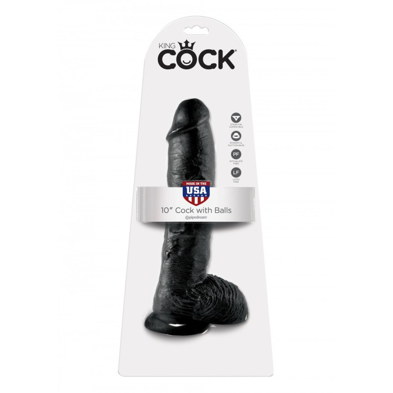 Grosso dildo nero in gomma, fallo maxi di 27 cm realistico King Cock 10" With Balls. Mega fallo made in USA, privo di ftalati, senza lattice. Vuoi che il tuo dildo sembri e si senta proprio come il grosso pene eretto che hai sempre desiderato? Smetti di sognare, ecco per te la linea King Cock della Pipedream! Ogni vena, il glande ed ogni dettaglio sono attentamente lavorati con dettagli incredibili per darti l'esperienza più realistica mai immaginata. La potente base a ventosa si attacca a quasi tutte le superfici piane ed inoltre rende compatibile questo dildo con ogni imbracatura strap on. Realizzato in un impianto di produzione di gomma di ultima generazione di Pipedream, ogni King Cock è privo di ftalati, senza lattice, corposo e antiallergico. Meglio di tutti, King Cock è orgogliosamente prodotto negli Stati Uniti in modo da poter godere di questo capolavoro con serenità. Grosso dildo nero in gomma super realistico Pipedream King Cock 10" con testicoli. La forte ventosa permette l'applicazione a piastrelle, specchi, comodini ecc.. per una fantastica cavalcata a mani libere! Lunghezza totale: 27 cm Lunghezza inseribile: 20,5 cm Diametro: 5,1 cm