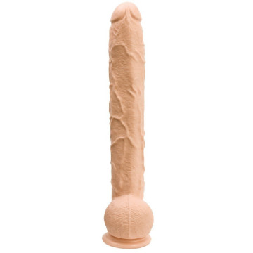 Dildo a forma di pene molto grande con piede a ventosa per esercizi di dilatazione. Realistico e con venatura pronunciata. Materiale color pelle: PVC. 42 cm di lunghezza, Ø 5-6 cm.