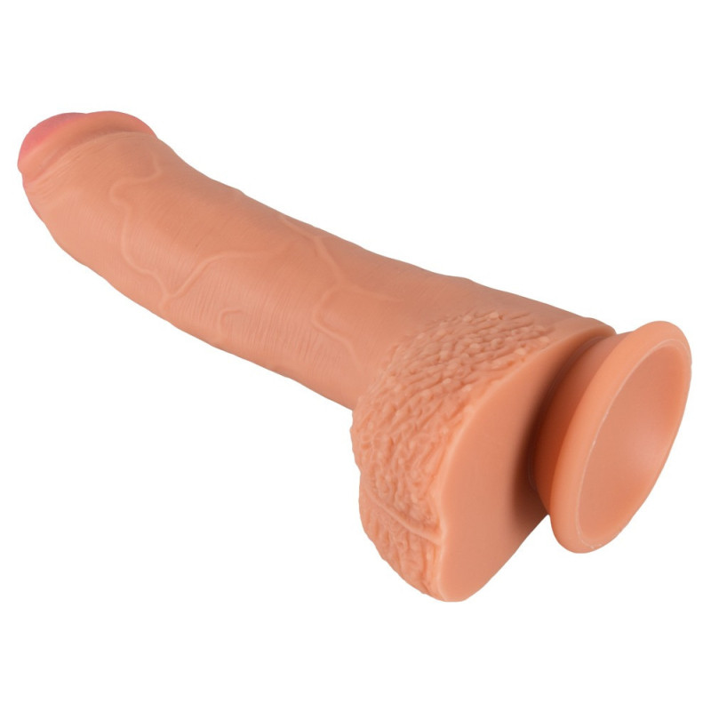 Dildo naturale color pelle con glande grassoccio, venature e testicoli per una texture superficiale che stimola molto. Piacevolmente flessibile e con base di aspirazione. Perfetto per giochi d'amore selvaggi di tutti i tipi.