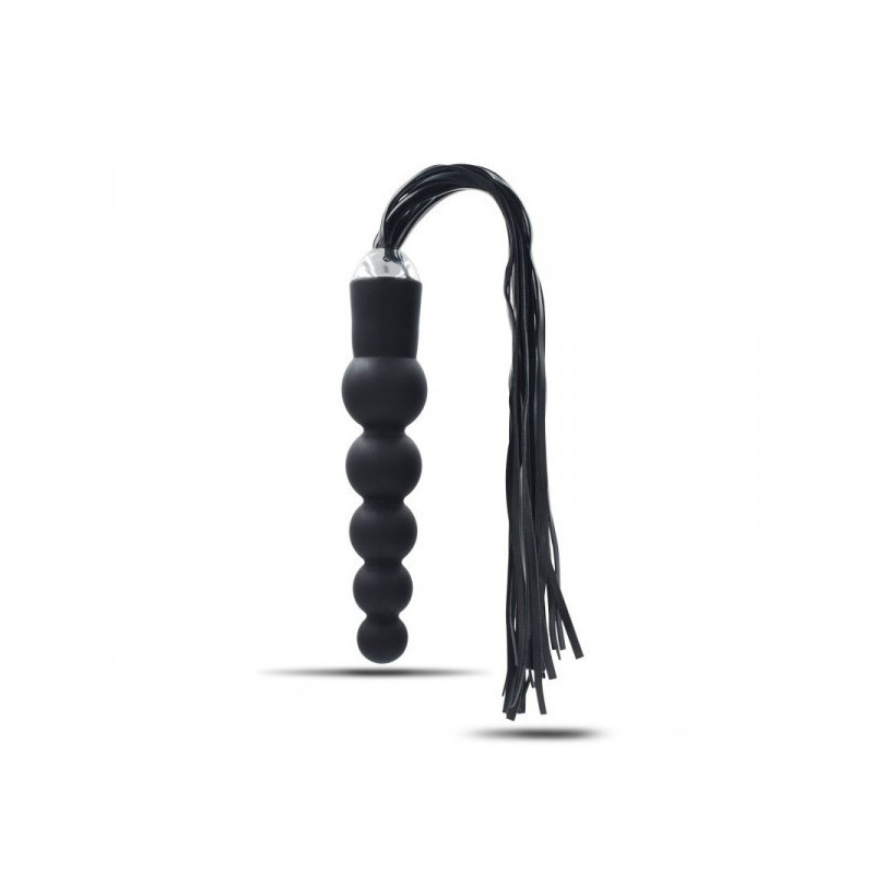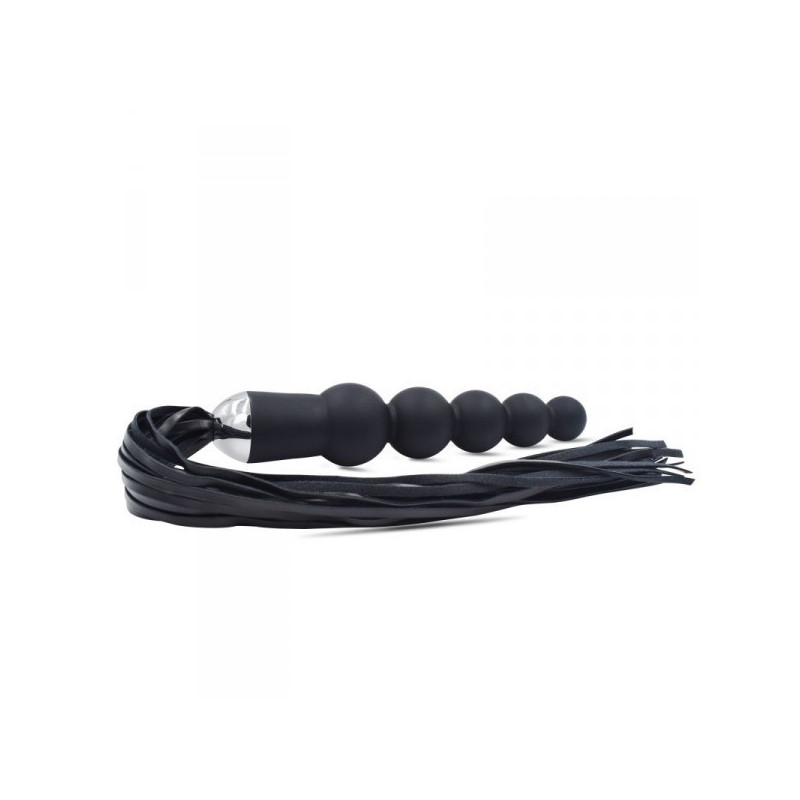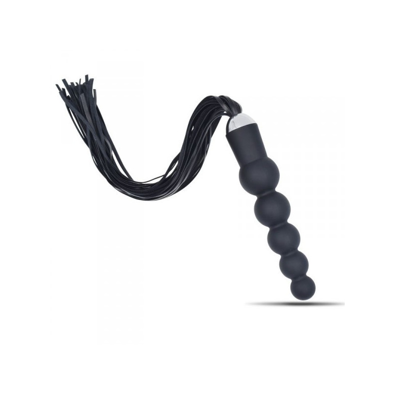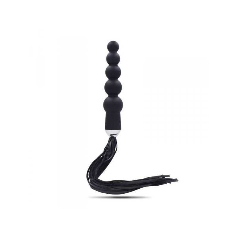 Cos' è? E’ un dildo anale realizzato in silicone di qualità e senza ftalati, dalla eccitantissima forma che ricorda un susseguirsi di perle, con alla base un frustino in ecopelle vegan a frange molto chic, che permette di ricevere anche delle frustate che, a seconda dell’energia impiegata, possono essere dolci o vibranti. A Cosa serve? Con questo dildo con frusta potrete ricevere una stimolazione anale efficace mentre la sua frusta dall’impronta BDSM, con la sua comoda impugnatura, sarà utilizzabile sulla pelle del partner sia per dolci carezze in odor di tickling (solleticanti) che per le più marcate frustate capaci di evocare le sculacciate dello spanking. Le frange della frusta sono versatili nell’utilizzo, adatte a pratiche soft sadomaso ma anche per saggiare frustate ben più forti. Date le sue dimensioni interessanti, il dildo non sdegna di certo degli utilizzi diversi, come ad esempio penetrazioni di tipo vaginale. Lunghezza frusta: 30 cm Come si usa? Il prodotto è facile da usare. Basta inserirlo nella zona erogena anale, magari facendosi aiutare da un lubrificante ad acqua, immancabile. La punta ergonomica e affusolata semplifica e rende comode le penetrazioni. Oppure si possono preferire le sensazioni “Dark” che permette di ricevere il frustino, abbandonandosi a ricevere delle sonore frustate. Ricordarsi di igienizzare sempre il sex toy dopo ogni utilizzo
