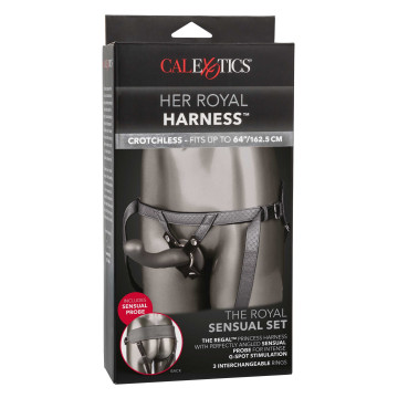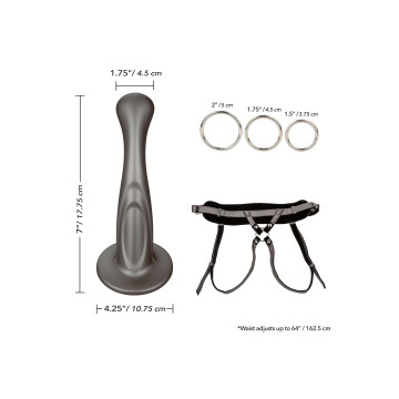 Creato per immergerti nell'emozionante mondo di un piacere profondamente soddisfacente con l'imbracatura Royal The Royal Sensual Set. Ogni set include la Regal Princess e la Sensual Probe con 3 anelli intercambiabili della sonda .Mantieni il massimo comfort mentre ami il tuo amante con questa imbracatura femme in morbida pelle vegan, fodera in morbido velluto e ampia fascia di supporto nella parte bassa della schiena. Concediti una lingerie di design con la similpelle grigia e gli accenti di metallo senza nichel