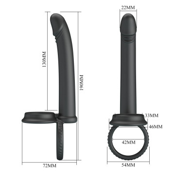 Lo strap on Moses offre un’azione combinata tra effetto costrittivo e stimolatore anale, grazie a un dildo liscio e lungo 130 mm con diametro massimo di 22 mm. L’intero toy misura 190 mm in lunghezza, con un anello elastico da 42 mm di diametro interno e struttura ergonomica da 72 mm. Realizzato in silicone vellutato, è flessibile, impermeabile e adatto a giochi di coppia.