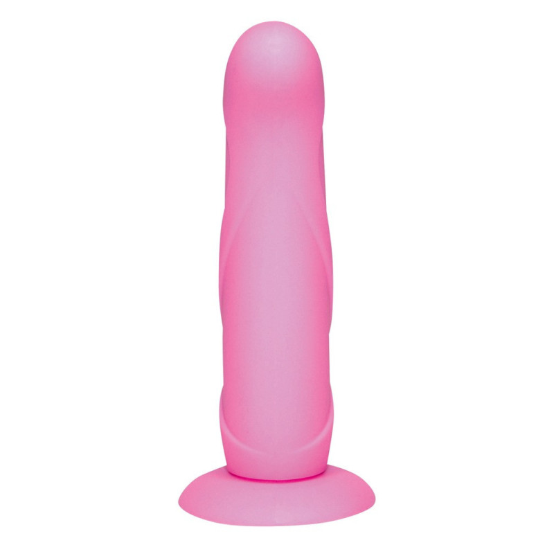 Dildo rosa che può essere fissato alla cinta di neoprene regolabile. Dildo ca. 16 cm di lunghezza, Ø 3,7 cm. Materiale: silicone.