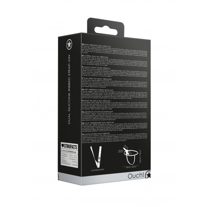 Dildo indossabile doppio Dual Silicone Ribbed Strap-On Adjustable Black