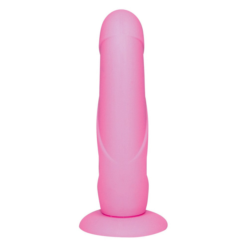 Dildo rosa che può essere fissato alla cinta di neoprene regolabile. Dildo ca. 16 cm di lunghezza, Ø 3,7 cm. Materiale: silicone.
