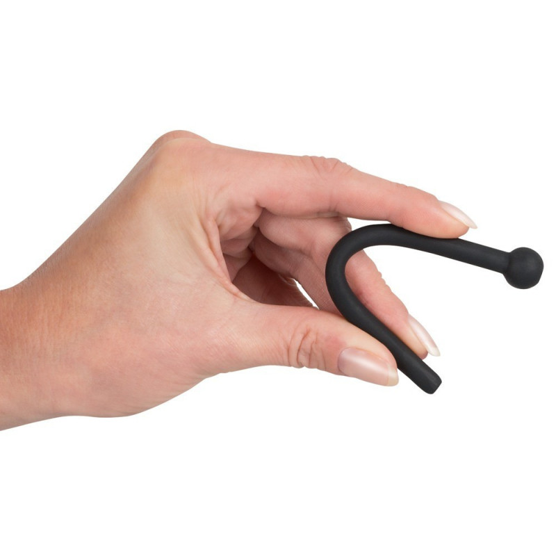 Urinare ed eiaculare è possibile! Presentare, sentire e divertirsi - per l'uomo che vuole provare sensazioni di piacere completamente nuove. Dilatatore vuoto nero che viene inserito nell'uretra. Flessibile. 11,8 cm di lunghezza, profondità di inserimento 10,7 cm. Ø 0,7 cm. Silicone.