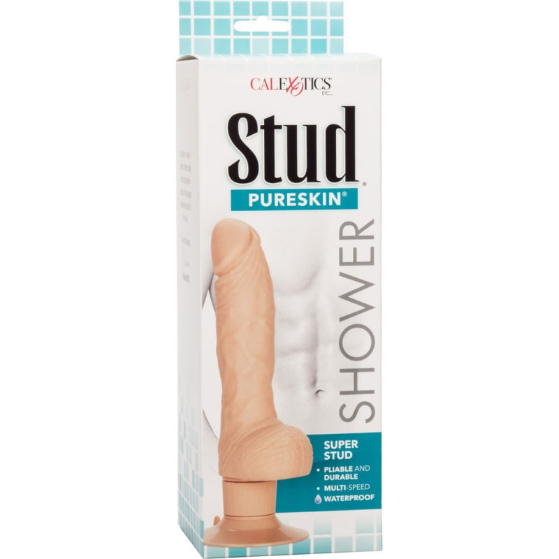 Il vibratore sensuale con ventosa Super Stud di CalExotics offre vibrazioni a velocità multiple ed è realizzato con materiale PureSkin ultra realistico. Il robusto sex toy vibrante è dotato di una robusta base per ventosa Power Maximum con linguetta di sollevamento facile. I sex toys impermeabili sono perfetti per migliorare il tuo sano divertimento sensuale in una doccia o in una vasca. Vibratore realistico di dimensioni medie, misura 8