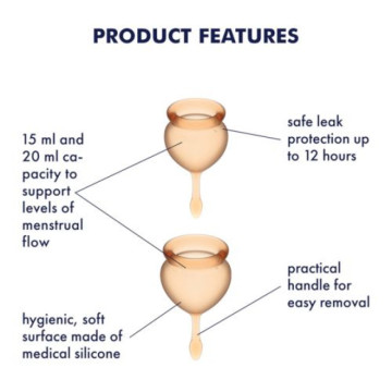Set da 2 coppette con capacità di 15 e 20 ml, in pregiato silicone medicale ipoallergenico. Ideate per i periodi di ciclo, dai giorni più leggeri a quelli più intensi. Riutilizzabili dopo l'igienizzazione con acqua calda e toy cleaner.