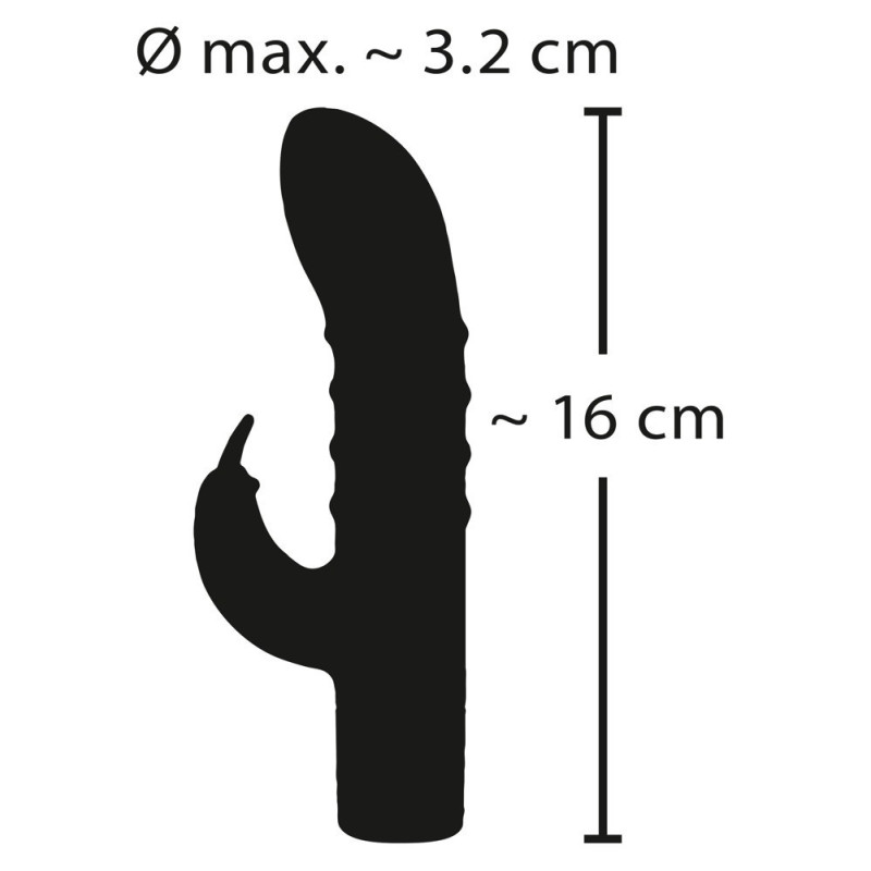 Pratico vibratore con stimolatore clitorideo per la stimolazione vaginale e clitoridea simultanea. 15 modalità di vibrazione forniscono una doppia stimolazione per un piacere molto vario. Con il pratico controllo One Button, le modalità sono comodamente regolabili al tocco di un pulsante. Il vibratore è fatto di materiale morbido in silicone tutto intorno e fornisce una sensazione di pelle molto piacevole durante le coccole. Dal momento che il vibratore è impermeabile, nulla si oppone al vibro-piacere anche sotto l'acqua (nella vasca da bagno o nella doccia). Con le sue dimensioni moderate, questo piccolo alimentatore entra in quasi tutte le tasche - ideale per i viaggi e in movimento. Ricaricabile - cavo di ricarica USB incluso.