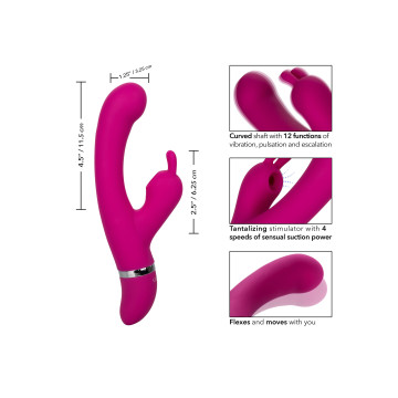 Goditi un momento di gioco appassionato con il Bacio del Coniglietto Frenesia dei Preliminari e dai vita alle fantasie birichine. Il doppio massaggiatore perfettamente dimensionato è completo di 10 potenti funzioni di vibrazione, 4 velocità di aspirazione intima e due motori indipendenti. Mentre le vibrazioni tremolanti fanno il loro lavoro, la punta di aspirazione a copertura totale offre un'ottima stimolazione dell'aspirazione.