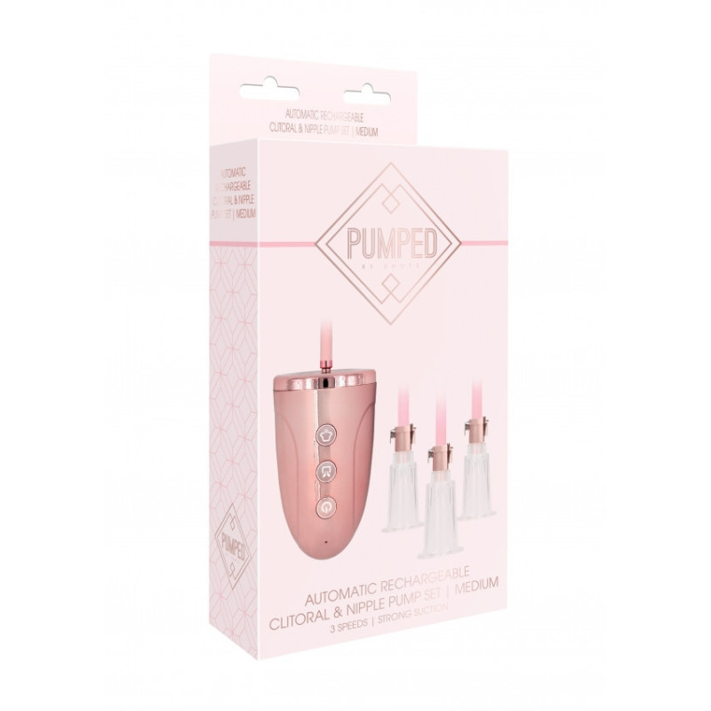 Kit pompa per capezzoli e clitoride Automatic Rechargeable Clitoral & Nipple Pump Set - M - Pink