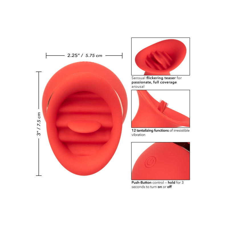 L'incantatore di baci francesi tantalize è uno stuzzica-lingua tremolante pronto per il viaggio, creato per una stimolazione sensuale. Il massaggiatore compatto si inserisce tra le dita per offrire un potente piacere tremolante con 12 sensuali funzioni di azione tremolante attraverso l'involucro completo e la punta simile a una lingua.Il massaggiatore a contatto completo e lo stuzzica lingua svolazzante sono stati realizzati per adattarsi perfettamente ai vostri punti di piacere più intimi. Il silicone morbido ed elastico e il corpo sensualmente sagomato consentono di offrire un piacere puro e mirato da qualsiasi angolazione. Usate il pulsante easy-touch per controllare fino a 50 minuti di piacere vibrante a bassa velocità e 35 minuti ad alta velocità. Ricaricate il vostro piacere in soli 75 minuti con il cavo USB in dotazione nella porta di ricarica autorigenerante del massaggiatore. Le dimensioni discrete del mini massaggiatore e il pulsante di blocco da viaggio lo rendono il compagno di viaggio perfetto, che vi permetterà di abbracciare il piacere irradiato ovunque vi portino le vostre fantasie.