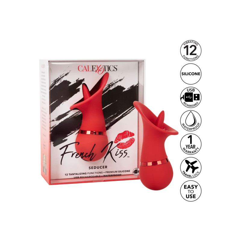Il sensuale French Kiss Seducer è pronto per essere infilato nella borsa o nella borsa da notte per un piacere orgasmico in movimento. Il massaggiatore compatto è sicuro di offrire un potente piacere tremolante con 12 funzioni sensuali di vibrazioni svolazzanti attraverso la punta a forma di lingua. La paletta a pieno contatto e il rompicapo con linguetta svolazzante sono realizzati per adattarsi perfettamente ai tuoi punti di piacere più intimi. Il morbido silicone flessibile e il corpo dalla forma sensuale ti consentono di offrire puro piacere da quasi un'angolazione.