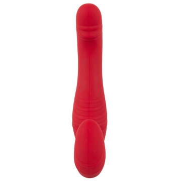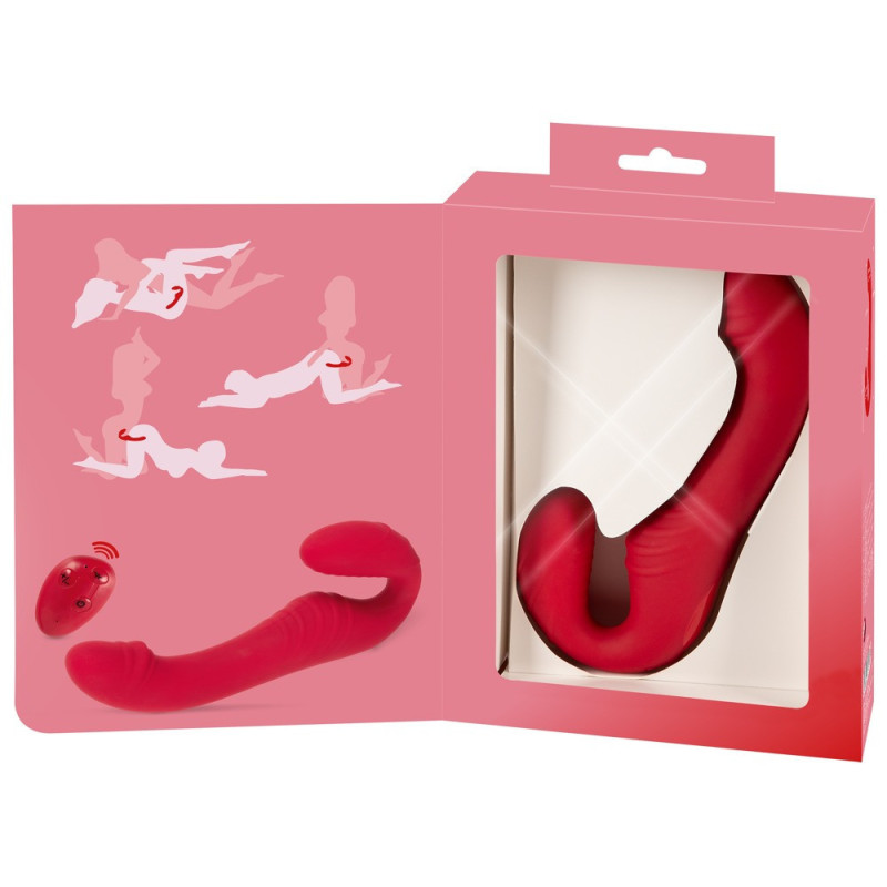 Potenza del vibratore triplicata - da solo o in coppia! Strapless RC Strap-On 3 di You2Toys con doppio vibratore flessibile. Il vibratore, corto e decisamente ondulato, viene inserito nella vagina e tenuto in posizione dai muscoli vaginali. Così equipaggiato, il vostro partner potrà farsi coccolare con il vibratore più lungo e dalla texture stimolante. 3 potenti motori coccolano con 9 modalità di vibrazione versatili a 3 velocità. Le funzioni possono essere controllate separatamente con il pratico telecomando, semplicemente premendo un pulsante. Ricoperto interamente da una texture morbida al tatto, il vibratore doppio in silicone assicura un facile inserimento e il massimo comfort di coccole quando lo si indossa e si gioca. Ricaricabile - include cavo di ricarica USB e batteria (CR2032) per il telecomando. Lunghezza totale 19,1 cm. Vibratore corto: lunghezza di inserimento 6 cm, Ø massimo 3,4 cm. Vibratore lungo: lunghezza di inserimento 17,5 cm, Ø massimo 3,7 cm. Peso 203 g. Silicone, PU, ABS.
