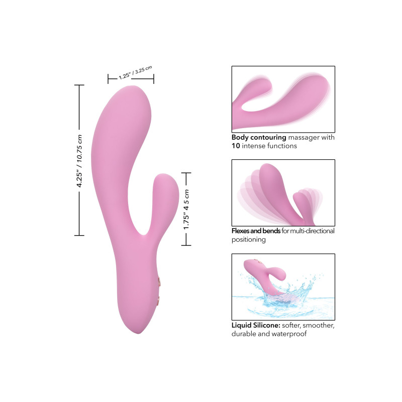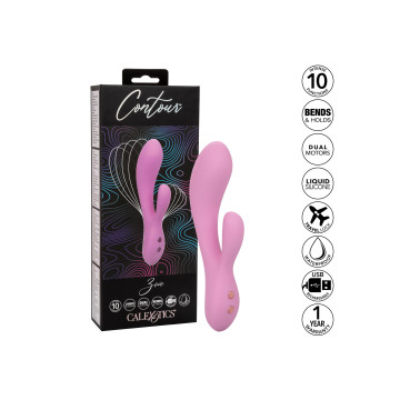 Raggiungete nuove vette di piacere con il fantastico e flessibile Contour Zoie. Il massaggiatore doppio intimamente sagomato è tanto eccitante quanto versatile, con un corpo estremamente flessibile, uno stuzzicadenti e 10 indulgenti funzioni di vibrazione. La punta accentuata dello stimolatore G e le intense pulsazioni del doppio motore consentono una stimolazione del punto G mai provata prima. Questo massaggiatore doppio ad alta potenza è stato creato con un fusto curvo e uno stimolatore naturalmente sagomato per soddisfare le vostre curve più intime. Dalle docce in solitaria ai momenti più piccanti nella vasca da bagno, giocate con la superficie impermeabile e le 10 funzioni di vibrazione estremamente potenti. Il comando a 2 pulsanti, facile da toccare, consente di scorrere le impostazioni di vibrazione fino alle ginocchia. Mentre i pulsanti easy touch controllano l'intensità e la vibrazione vi offre la stimolazione che desiderate, il corpo flessibile mantiene qualsiasi posizione desideriate. Ricaricate il teaser in silicone premium in 2,5 ore con il cavo di ricarica USB in dotazione per godere di 40 minuti di stimolazione ad alta velocità o 90 minuti di vibrazioni a bassa velocità. Il design del silicone liquido premium è morbido, liscio, resistente e impermeabile.