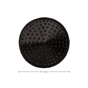 Avvolgete le vostre prelibatezze nel glamour con gli incantevoli Radiance Round Pasties. Questi copri capezzoliriutilizzabili sono pronti per le feste grazie agli accenti di gemme scintillanti, al nastro adesivo facile da staccare e attaccare e al design aderente. Il design aderente e il nastro autoadesivo sono fatti per i giochi prolungati e possono rimanere al loro posto, anche se si agita e si agita. Gli affascinanti copri capezzoli sono l'aggiunta perfetta a qualsiasi look da festival musicale selvaggio, outfit da rave, Pride fit o come lingerie lussuriosa. Facile applicazione - Pulire accuratamente e asciugare la posizione desiderata, staccare e attaccare il nastro adesivo e premere saldamente in posizione per garantire un'usura duratura. Per ottenere risultati ottimali, evitare l'uso di lozioni o oli sul luogo prima dell'uso e applicare qualsiasi trucco/gioiello/brillantini dopo aver applicato i copri-capezzoli.