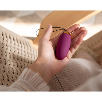 Uovo vibrante ricaricabile e impermeabile con una texture setosa e morbida al tatto, incluso un cinturino di ritorno. Con 5 modalità di vibrazione silenziose, ciascuna con 5 diverse intensità. L'ulteriore modalità intelligente SVAKOM imita le frequenze di vibrazione del rapporto sessuale fino all'orgasmo. Controllabile con la semplice pressione di un pulsante o con il telecomando incluso.