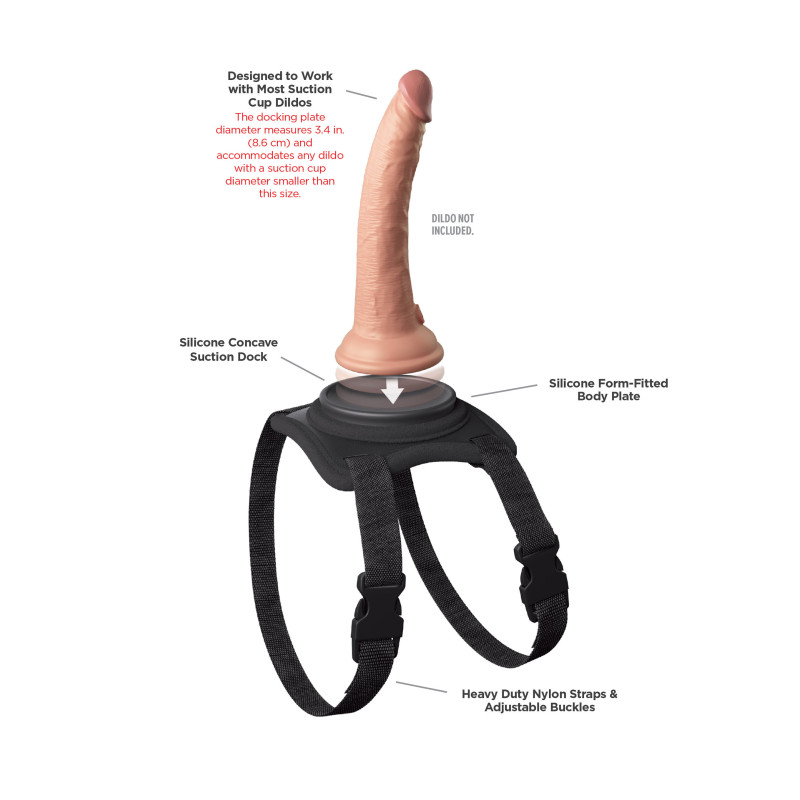 A tutti piace una bella lap dance, ma a volte non vorresti portarla oltre? Bene, ora puoi farlo con la strap-on Body Dock brevettata! Questa cintura è dotata di una piastra di ancoraggio in silicone di alta qualità e fibbie regolabili a sgancio laterale, in modo da poterla indossare comodamente intorno alla tua gamba/coscia mentre il tuo partner ti regala la lap dance più sexy di sempre. Cambiare il tuo accessorio strap-on preferito non è mai stato così veloce o facile! Basta attaccare la ventosa del tuo dildo o vibratore preferito alla piastra di ancoraggio, mentre le cinghie in nylon si regolano facilmente per adattarsi alla maggior parte delle taglie e dei tipi di corpo. E la cosa migliore è che funziona con la maggior parte dei dildo disponibili sul mercato oggi, incluso qualcuno che potresti già possedere. Nessun anello. Nessun bottone. Nessun problema!