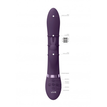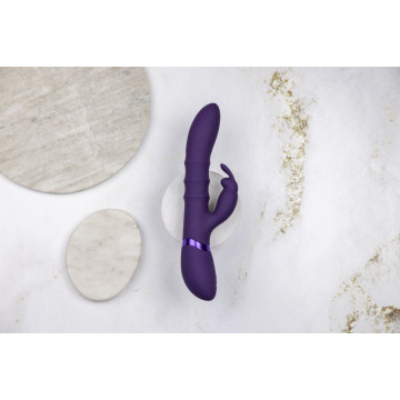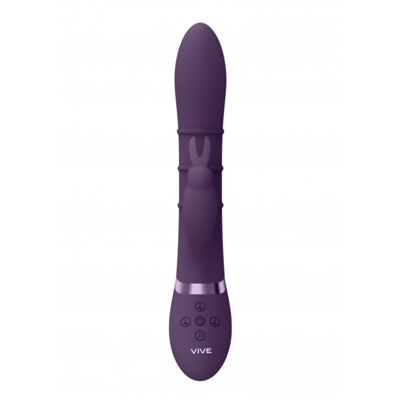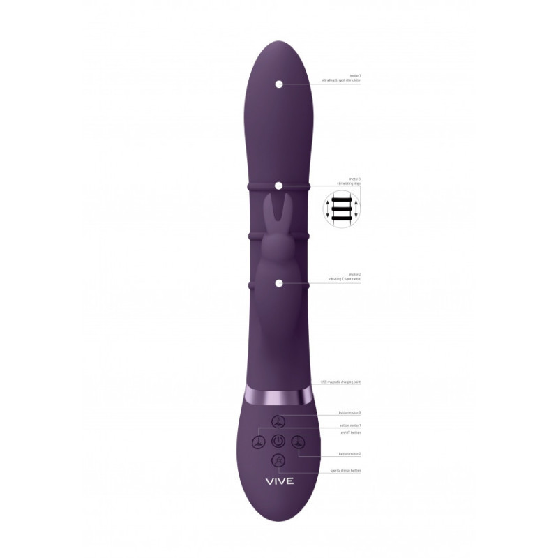 Il marchio High Class VIVE è sinonimo di massima stimolazione attraverso l'innovazione continua! Questo Vibratore Rabbit per punto G top di gamma vanta una caratteristica unica che farà arricciare le dita dei piedi in estasi! Ha un set di 3 anelli stimolanti nell'asta liscia in silicone medicale che si muove su e giù per un massaggio interno" come nessun altro. Gli anelli sono dotati di 10 diverse modalità di velocità, mentre lo stimolatore del punto G e lo stimolatore Rabbit hanno entrambi 10 diverse modalità di vibrazione che offrono 1.000 diverse fantastiche impostazioni tra cui scegliere. Il VIVE054 è impermeabile IPX7 e ricaricabile. Una carica di 150 minuti ti darà 45 minuti di piacere sfrenato a meno di 60 dB. Inoltre, questo vibratore unico e innovativo ha un pulsante di blocco da viaggio e un tasto climax, quando sei pronta per l'orgasmo, basta premere il pulsante climax e con un solo tocco tutti i motori vanno alla loro impostazione più forte.