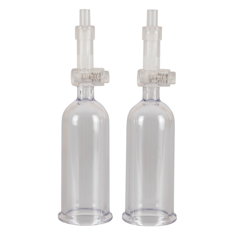 Attente, donne - qui arriva la stimolazione eccitante per voi: basta posizionare la campana a ventosa sui capezzoli e/o sul clitoride e poi generare con la pompa il voluttuoso vuoto aspirante. Due campane a ventosa trasparenti (rispettivamente ca. 6 cm di lunghezza, Ø di apertura 2 cm) con regolatore della pressione e pompa. Il vuoto rimane anche quando staccate il tubo della pompa. Materiale: ABS.