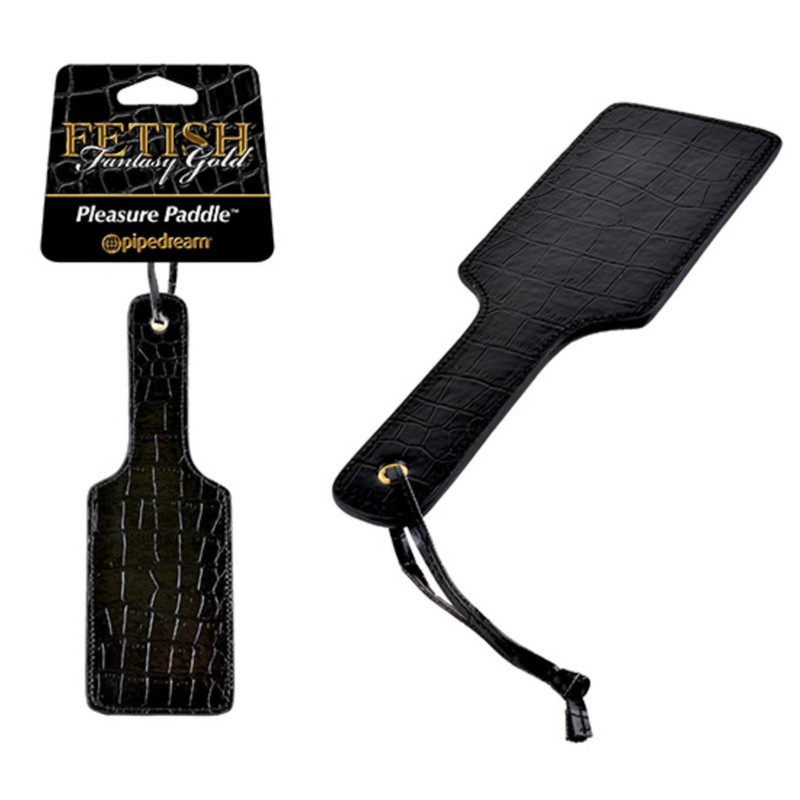 Sculacciatore paddle per sculacciare fetish bondage gold pleasure. Grazie a Questo super sculacciatore potrete sculacciare il vostro partner accarezzando con questo paddle spanker che e' fatto per chi vuole comandare con il massimo del piacere. Dai qualche goduriosa pacca sul lato B al vostro partner per fantastici giochi sadomaso che vi faranno scoprire la dolcezza del dolore.