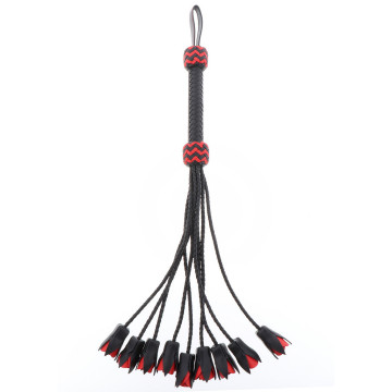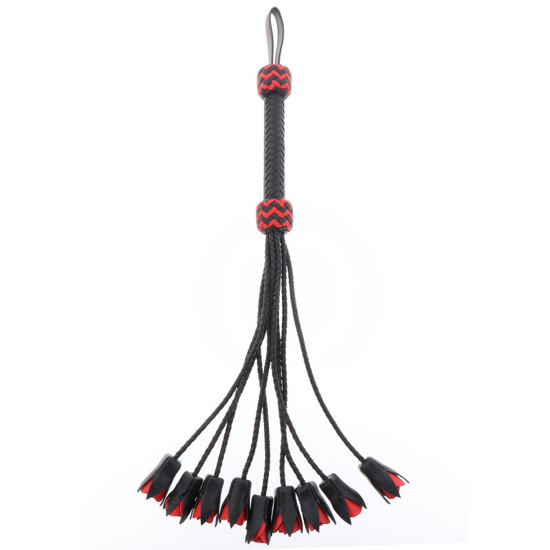 Abbracciate l'eleganza con la frusta Real Leather Roses. Caratterizzato da intricate code a forma di rosa realizzate in pelle pregiata, questo frustino unisce bellezza e funzionalità. L'impugnatura intrecciata con accenti rossi offre una presa sicura, mentre le rose flessibili regalano sensazioni delicate ma d'impatto, perfette per un gioco sofisticato.