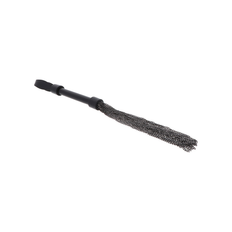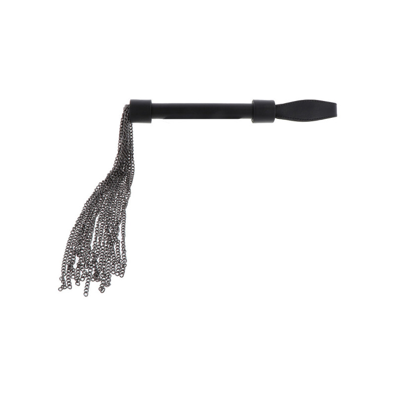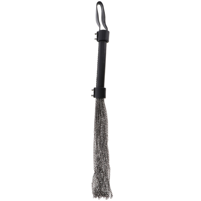 Elevate il vostro gioco con la frusta a catena in vera pelle. Dotato di una robusta impugnatura in pelle e di molteplici code di catena in metallo, questo frustino offre sensazioni intense ad ogni colpo. La combinazione di pelle pregiata e metallo crea un'esperienza audace e indimenticabile, perfetta per gli utenti più avventurosi.