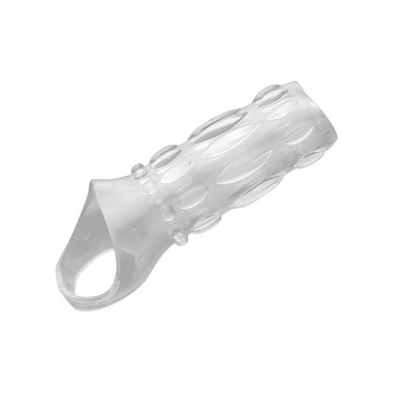 Clear Sensations Enhancer Sex Sleeve è una guaina capace di aumentare le dimensioni del vostro pene e le prestazioni, tutto in uno. Provate questa fantastica guaina per migliorare le vostre dimensioni, una guaina per pene strutturata e sottile, perfetta per l'uomo dinamico. Come funziona? basta farla scivolare sul vostro pene per avere un miglioramento nell'erezione istantaneo, senza attese prolungate, pillole o creme! Inoltre dei rilievi esterni stimolano il vostro partner ogni volta che lo penetrate. La guaina presenta un design trasparente e aperto nella parte finale, molto confortevole. Una volta inserito lo scroto all'interno del cinturino potrete facilmente divertirvi in completa sicurezza, la guaina rimarrà saldamente ferma in posizione. Incrementate il vostro potenziale con Size Matters. Potrete estendere la resa della vostra performance sessuale con una linea di prodotti che renderanno tutto più grande e migliore! Size Matters propone una selezione di prodotti per le zone erogene per quanti siamo interessati al potenziamento. Scoprite nuove vette di piacere, con l?aumento sensibile della vostre dimensioni. Con Size Matters potrete spingere il vostro desiderio oltre i confini e i limiti della vostra fisicità!