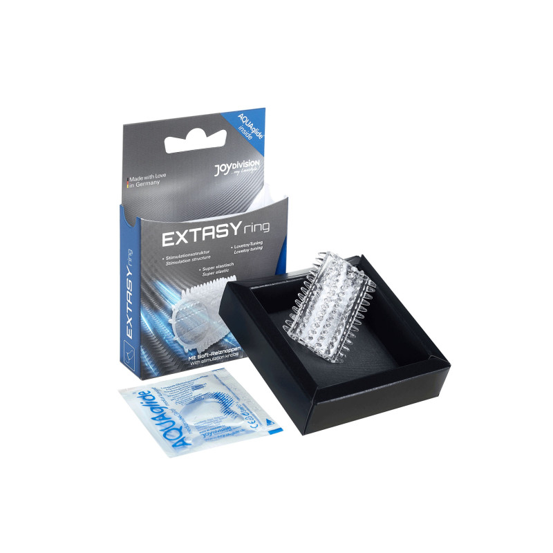 Con i suoi nodi stimolanti, EXTASYring offre ancora più divertimento in coppia. Offre a LUI una maggiore resistenza e a TE una stimolazione più intensa. EXTASYring regala momenti speciali anche calzato nel dito ed è perfetto per Lovetoy-Tuning. È particolarmente elastico e perfettamente aderente, aumentando così il piacere.