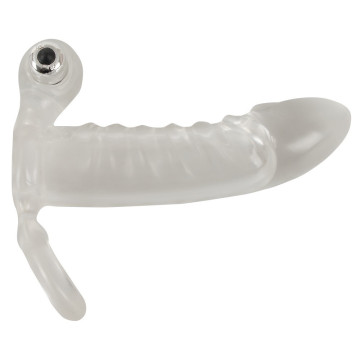 Questa guaina trasparente per il pene fatta di morbido materiale elastico porta il pene in ottima forma per riempire l'indulgenza. La guaina aderente, che sostiene l'erezione, si infila semplicemente sul membro eretto e assicura una vestibilità ferma e confortevole senza scivolare grazie all'anello per i testicoli. Grazie allo spessore del materiale e alla particolare struttura di stimolazione, il pene si ingrandisce in circonferenza e si allunga grazie al glande di forma soda. Il piccolo e potente Vibrobullet è inserito nell'anello superiore e fornisce un'eccitante stimolazione aggiuntiva. Comprese le batterie (3 x LR44) per il Vibrobullet.