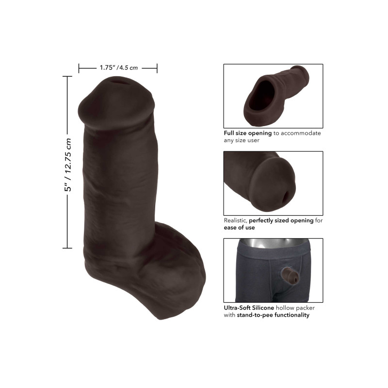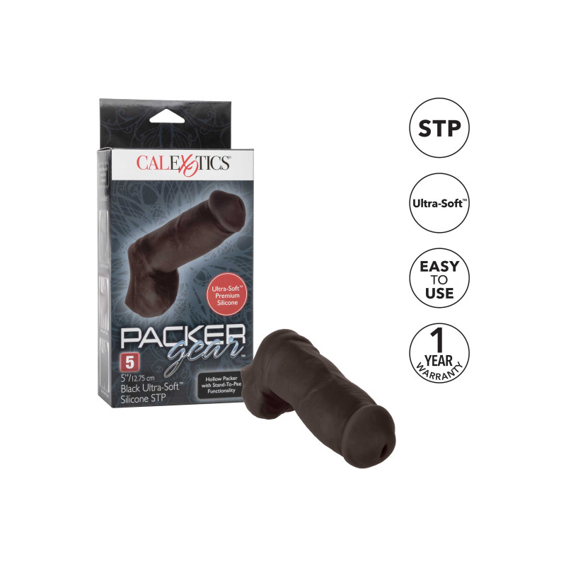Packer Gear ™ da 5 pollici Ultra-Soft ™ in silicone STP è un packer unico progettato con un albero cavo e un'ampia apertura per la funzionalità FTM Stand-to-pee. Progettato pensando alla funzionalità e al comfort, il packer scolpito si adatta facilmente alla tua imbracatura preferita e il silicone Ultra-Soft ™ premium si flette con il corpo. Il silicone morbido e flessibile, la sensazione realistica e il tono della pelle nera la rendono la sonda perfetta per l'uso e l'uso tutto il giorno.Il silicone ipoallergenico di alta qualità è sicuro per il corpo, inodore e privo di ftalati per mantenere i punti più sensibili, felici e sani. Prima e dopo l'uso, lavare con acqua calda e sapone e poi spruzzare con un Universal Toy Cleaner.