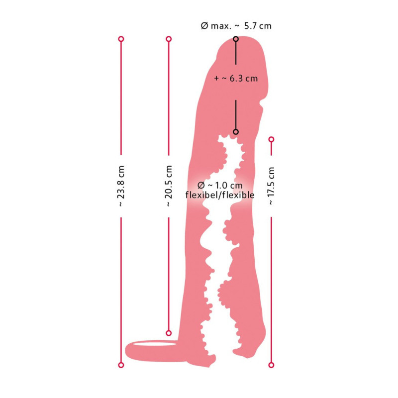 Il 2in1 Extension + Masturbator LARGE di Nature Skin combina una guaina per il pene per l'allungamento e l'ispessimento con un masturbatore in un unico giocattolo. Il design è incredibilmente realistico all'esterno, con un'apertura in stile vagina e una guaina venata in stile pene con glande rigonfio. L'interno ha un'intensa e autentica texture stimolante per un perfetto massaggio del pene durante le seghe e il divertimento a due. L'anello per testicoli, molto elastico, offre un'eccitante trazione durante la masturbazione e una presa sicura durante il sesso.