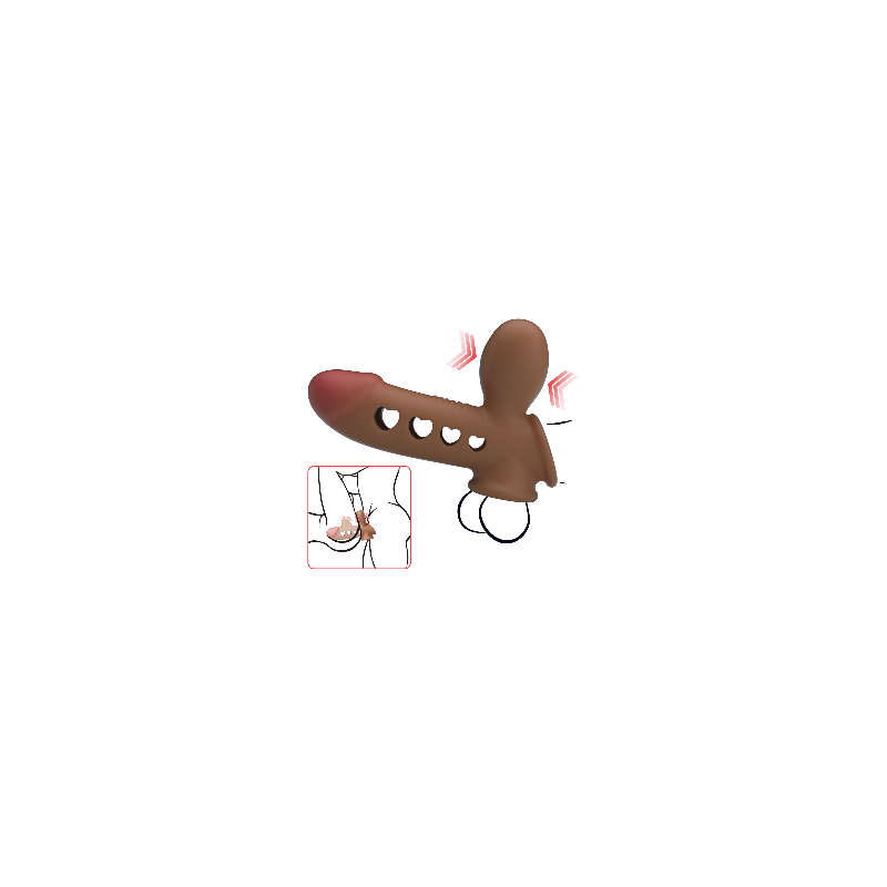 La guaina e prolunga pene Tyronn è un dispositivo in silicone morbido ed elastico progettato per aumentare la lunghezza, lo spessore e l’intensità della stimolazione durante il rapporto. Il toy ha un design ergonomico con dei fori a cuore e una pompa che gonfia la parte interna, stimolando così anche la partner durante il rapporto. Include anello per testicoli per migliorare la tenuta e la durata dell’erezione. Misura 16,1 cm di lunghezza, 4,4 cm di diametro massimo, 10,8 cm di altezza.