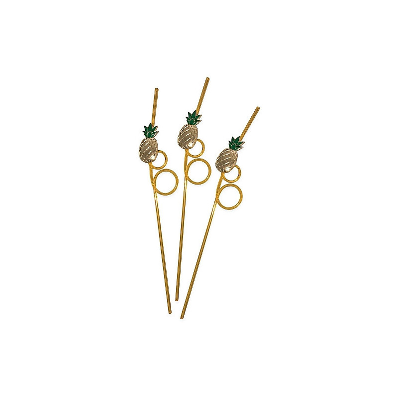 Con queste eleganti cannucce, sarete i protagonisti della vostra prossima festa o potrete gustare una bevanda tropicale in spiaggia o a bordo piscina. Ideali per feste a tema o per qualsiasi evento in cui si voglia aggiungere un tocco di classe alle bevande! Le cannucce sono riutilizzabili e lavabili. Include: 3 cannucce riutilizzabili con medaglioni di ananas in metallo.