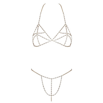 Set glamour con catena inguinale! Bikini a catena color oro di Cottelli ACCESSOIRES con reggiseno e string. Catene di strass scintillanti sul seno e sulla zona pubica. Catena stimolante all'inguine fino a sopra il sedere. La catena al collo, la catena sulla schiena e la catena con stringhe possono essere regolate e personalizzate individualmente con chiusure a moschettone. Indossato da solo come lingerie per un look erotico o abbinato con stile a costumi da bagno e abiti aderenti, il bikini a catena glamour è sempre un eccitante richiamo per gli occhi!