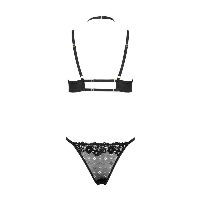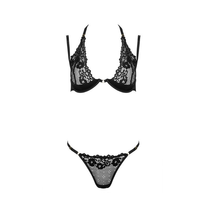 Questo affascinante e seducente set combina il meglio del design classico e moderno, facendovi sentire incredibilmente femminili e sexy. Realizzato in delicato pizzo e lussuoso raso nel classico colore nero, esalta la vostra bellezza naturale e vi regala un'esperienza sensuale. Le spalline e il reggiseno con collarino sono completamente regolabili, mentre la chiusura regolabile sulla schiena assicura una vestibilità ottimale. I ferretti sollevano il seno e accentuano il décolleté. Il pizzo è progettato per offrire scorci sottili pur garantendo un ottimo sostegno. Il pizzo delicato con splendidi ricami aggiunge un tocco di eleganza, mettendo in risalto la bellezza naturale del vostro corpo. Anche il perizoma dal taglio moderno è regolabile e completa perfettamente il design sensuale di questo set.