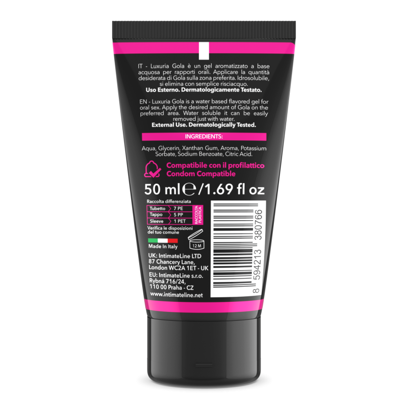 Gola Oral Pleasure, Cherry Gola Oral Pleasure è un lubrificante per sesso orale edibile dall’aroma accattivante e sensuale, che abbina l’azione idratante e addolcente dello zucchero a quella rigenerante degli estratti naturali dei frutti. Gola Oral Pleasure è un lubrificante a base acquosa, non unge, non macchia e si elimina con un semplice risciacquo; è formulato appositamente per garantire ultra-scorrevolezza e il massimo comfort. Gustoso e provocante, è particolarmente indicato per stuzzicare la fantasia e aggiungere un tocco di sapore ai vostri momenti più intimi. Può essere usato in modo sicuro con oggetti e dispositivi in lattice, la sua formula, infatti, garantisce una totale compatibilità con i preservativi.