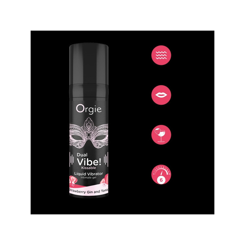 Prova la potenza di Orgie Vibe! Bullet, un kit vibrante che combina gli effetti di formicolio del vibratore liquido Dual Vibe! Kissable al delizioso gusto di gin tonic alla fragola con le 10 modalità di vibrazione di un potente mini bullet. Vibrazioni multiple che esplodono in un piacere intenso. Dual Vibe! Kissable Liquid Vibrator offre un leggero formicolio intenso e un sapore delizioso per aggiungere un ulteriore livello di piacere al sesso orale. Mini bullet vibrante, compatto ma incredibilmente potente. Ideale per l'uso in coppia e da soli; progettato per qualsiasi identità sessuale, perché il piacere non ha limiti. Orgie Vibe! Bullet: il kit che trasforma ogni momento intimo in un'esplosione di piaceri sensoriali.