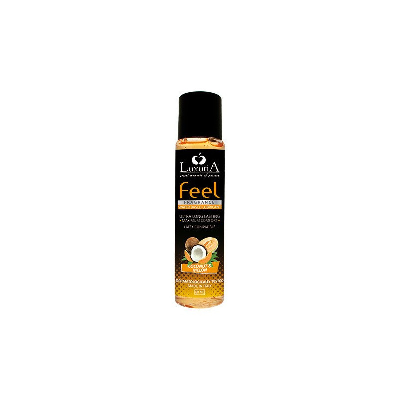 Luxuria Feel Fragrance cocco melone è un lubrificante intimo a base acquosa specifico per l'idratazione e la lubrificazione vaginale o anale prima del rapporto intimo. Non unge, non contiene grassi. Grazie alla sua esclusiva formulazione ricca di preziosi elementi attivi naturali Luxuria Feel Fragrance previene fastidi, bruciori ed irritazioni tipiche delle zone intime sottoposte a stress naturali e prolungati. Prodotto idrosolubile. Per continuare a garantire le eccellenti proprietà lubrificanti dei nostri prodotti non abbiamo utilizzato aromi alimentari in quanto, la maggior parte delle volte, vanno ad inficiare sulle proprietà di scorrevolezza del prodotto stesso. Abbiamo preferito utilizzare fragranze (profumazioni) naturali. Per questo motivo si consiglia un uso diverso da quello alimentare. Può essere usato in modo sicuro con oggetti e dispositivi in lattice, la sua formula a base acquosa ne garantisce una totale compatibilità con i preservativi. Applicare la quantità desiderata di Luxuria Feel Fragrance sulla parte del corpo desiderata o su un sex toy e massaggiare. Latex Compatibile Dermatologicamente testato