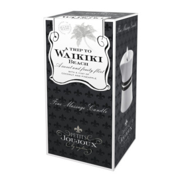 Accendere la candela e attendere qualche minuto, finché non si sia formata una quantità sufficiente di caldo e piacevole olio per massaggi. Spegnere la fiamma e applicare l'olio sulle parti della pelle che si desidera viziare con un massaggio sensuale.Le lussuose candele da massaggio Petits Joujoux sono un viaggio per i sensi, disponibili in sei incantevoli profumi ispirati a sei luoghi incantevoli di tutto il mondo. Un viaggio a Waikiki porta il profumo dolce e fruttato di cocco e ananas che fa pensare alle Piña Coladas sotto le palme su una spiaggia di sabbia. Dopo che la candela profumata è stata accesa, la sua cera si scioglie in un olio da massaggio piacevolmente caldo arricchito con ingredienti cosmetici di alta qualità come l'olio di jojoba e il burro di karité che forniscono alla pelle nutrimento e cura. Le candele da massaggio Petits Joujoux sono fatte con tutti gli ingredienti naturali senza coloranti o conservanti artificiali. Grazie ai loro pratici germogli di porcellana e alla confezione ordinata queste candele fanno un regalo perfetto.