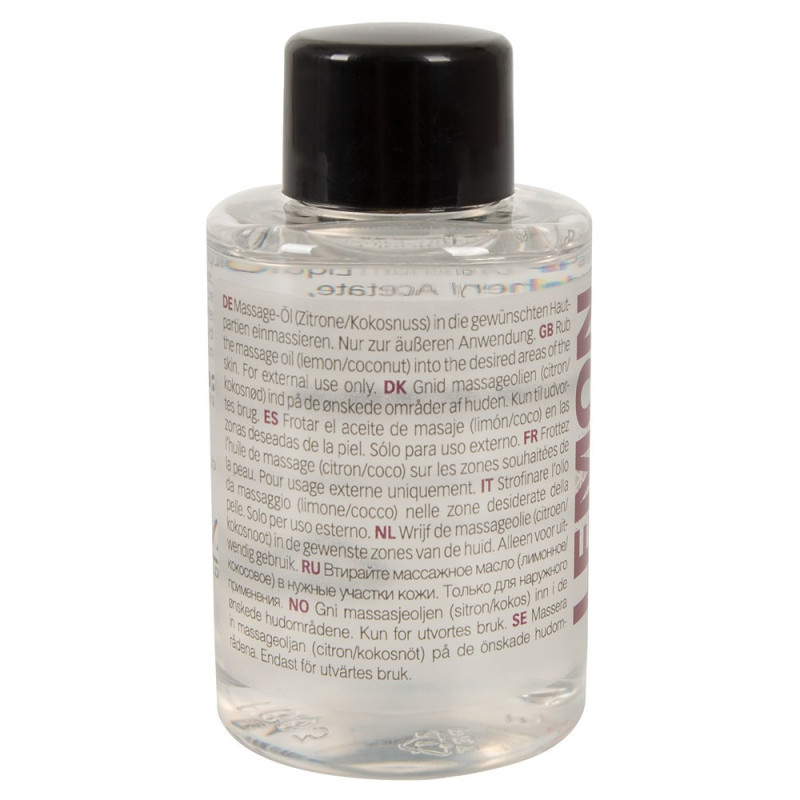 L'olio per massaggi erotici Just Play ha un'eccitante profumazione esotica al limone e cocco che coccola tutti i sensi e risveglia gli stati d'animo erotici durante un massaggio con il partner. Molto economico. Vegano. 50 ml. Solo per uso esterno.
