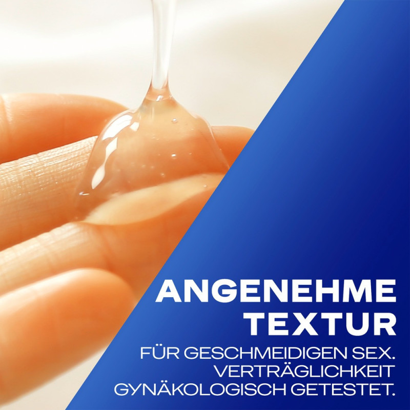 Lubrificante medico a base d'acqua per una sensazione reale, con una texture extra leggera per pura intimità. Solubile in acqua, senza grassi e non appiccicoso. Incolore e inodore. Dermatologicamente testato. Corrisponde al valore del pH vaginale. Preservativo in lattice sicuro. 50 ml