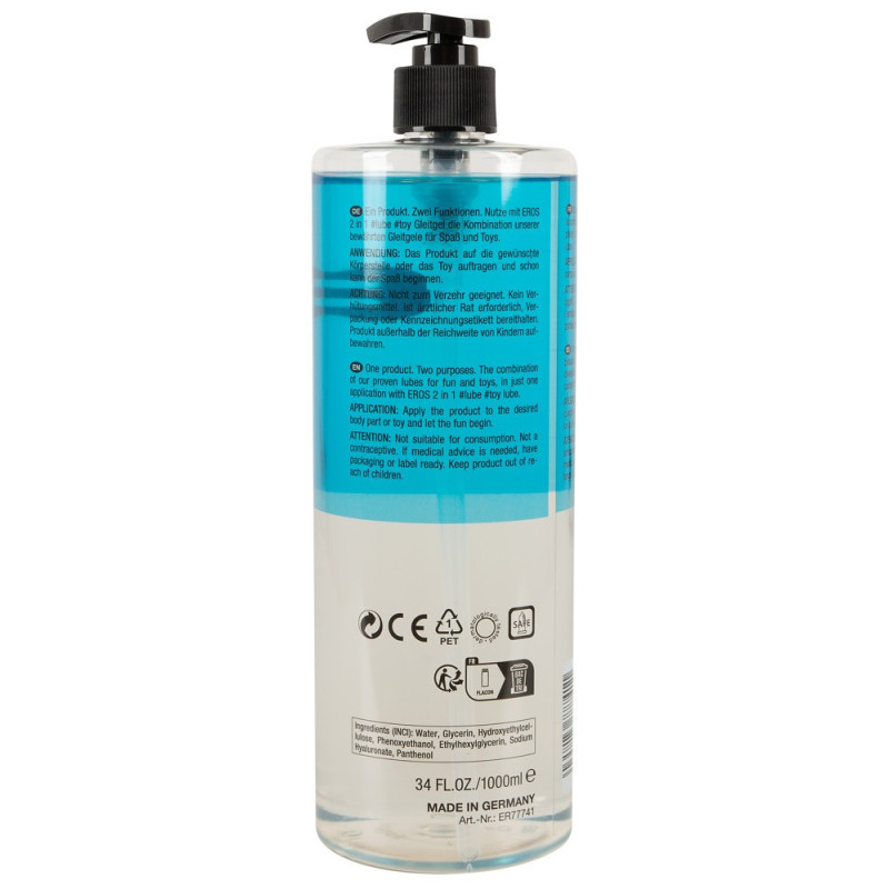 Lubrificante 2in1 a base d'acqua e giocattolo di EROS con pantenolo idratante per un uso versatile durante il divertimento sessuale e quando si gioca con i giocattoli - anche in silicone o lattice. Perfetta scorrevolezza e lubrificazione di lunga durata per tutte le attività sessuali. Sicuro per i preservativi in lattice. Inodore e insapore.