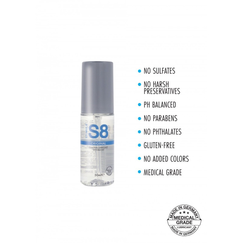 Il lubrificante originale Waterbase di S8 è perfetto per i consumatori che cercano un lubrificante di alta qualità e sicuro per il corpo per migliorare l'intimità e rendere più intime le loro avventure intime. Questa fantastica formula a lunga durata di S8 è completamente priva di parabeni, senza ftalati, senza glutine, senza solfati e inoltre non contiene colori aggiunti o conservanti aggressivi per un irresistibile appeal "naturale". Con l'approvazione di livello medico, S8 Waterbase Original Lubricant aderisce inoltre a tutti gli attuali regolamenti UE relativi ai prodotti per l'igiene intima e costituisce un'alternativa affidabile, competitiva e trasparente ad altre scelte non approvate sul mercato.